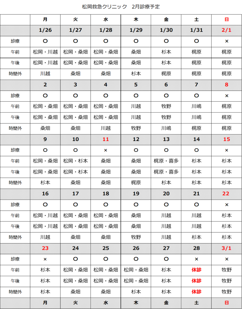 2月診療予定